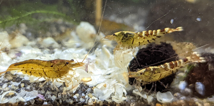 If you’re not sure they’re getting enough to eat, there are lots of different foods for your shrimp like algae wafers, bee pollen, shrimp pellets, blanched vegetables, etc.